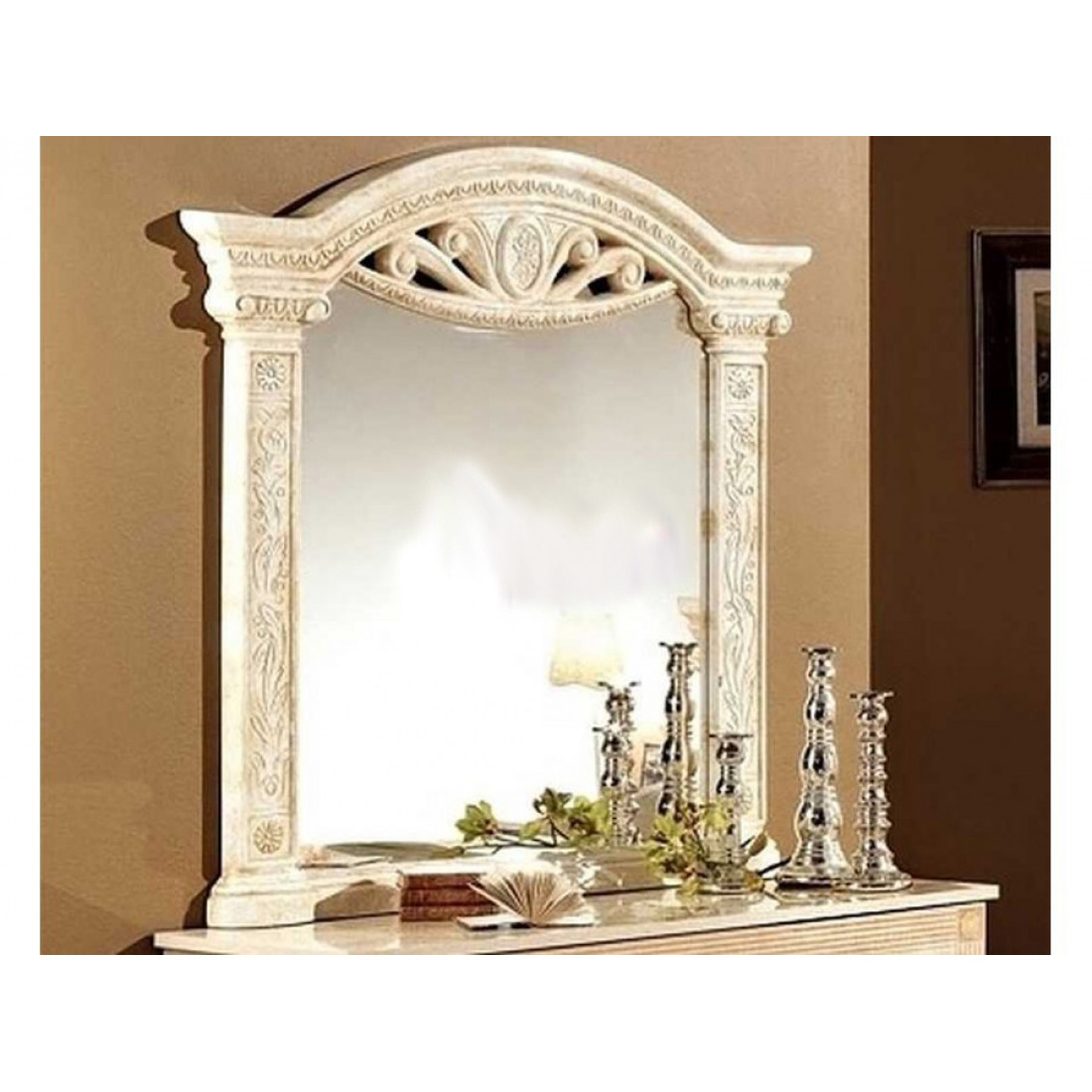 Зеркало для туалетного столика Рома (беж) от Российской фабрики «ДИА мебель», выполнено в элегантном бежевом цвете. Зеркало имеет красивую и нестандартную форму и будет отличным дополнением к туалетному столику любой ширины.